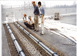 5塞泡沫板、穿筋、蓋網(wǎng)、澆筑水泥砼