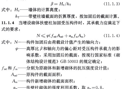 11. 1. 2 增設砌體扶壁柱加固墻體時,其承載力和高厚比的驗算應按
