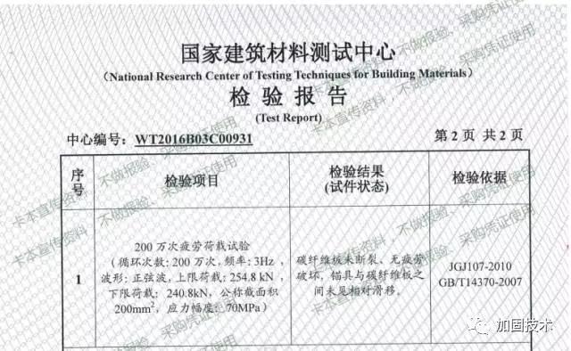 首先,選擇通過(guò)耐疲勞應(yīng)力作用能力檢測(cè)的結(jié)構(gòu)膠??ū绢A(yù)應(yīng)力碳板配套碳板粘接劑選擇通過(guò)安全性鑒定的卡本浸漬膠,其耐疲勞荷載作用能力完全滿足國(guó)標(biāo)要求。