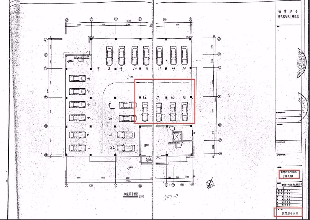 根據(jù)當(dāng)年福建建專建筑規(guī)劃設(shè)計(jì)研究院出具的福州市軟件園產(chǎn)業(yè)基地29號(hào)研發(fā)樓架空層平面圖的設(shè)計(jì)圖紙(如下),此區(qū)域應(yīng)為敞開(kāi)式停車(chē)區(qū)域,但是現(xiàn)在被祥豐物業(yè)及其關(guān)聯(lián)公司“福建益網(wǎng)信息技術(shù)有限公司”對(duì)29#研發(fā)樓架空層任意圍擋施工,該行為明顯違反上述規(guī)劃許可。