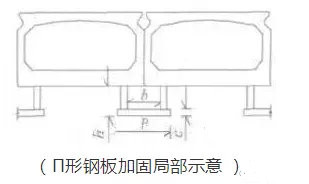 Π形鋼板加固板梁是一項(xiàng)新型加固技術(shù),它是指沿空心板縱向利用Π形鋼板將相鄰空心板連接起來(lái),Π形鋼板與空心板之間采用膠粘劑、膨脹螺絲連接,進(jìn)而可以把荷載傳遞到鋼板,使鋼板與空心板協(xié)同工作。這種加固方法充分發(fā)揮了鋼的材料特性,混凝土主梁的剛度與強(qiáng)度得到了提高。該加固方法施工快速簡(jiǎn)便、經(jīng)濟(jì)可靠,并能有效提高主梁的抗彎、抗剪能力。