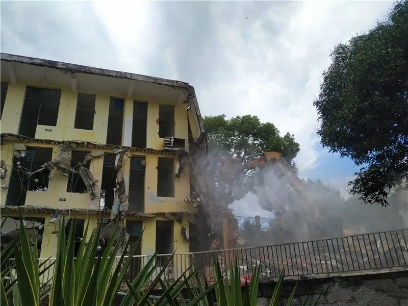 ▲(鉤機(jī)正在拆除鴻尾中學(xué)實(shí)驗(yàn)樓)