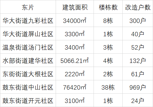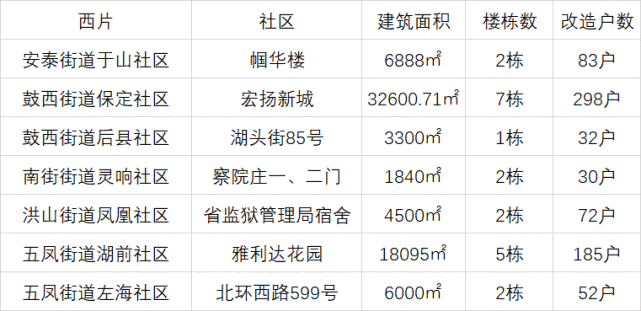 其中,西片工程涉及5個街道的7個社區(qū),改造戶數(shù)為752戶,總建筑面積73223.71㎡。估算總投資 1937.95萬元,建設(shè)內(nèi)容包括飾工程、安裝工程、排水工程以及室外配套工程等。