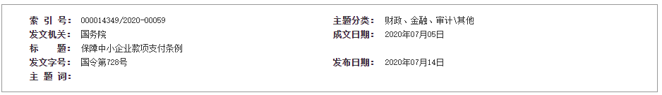 近日,國(guó)務(wù)院正式公布了《保障中小企業(yè)款項(xiàng)支付條例》,要求建立長(zhǎng)效機(jī)制解決拖欠中小企業(yè)款項(xiàng)問(wèn)題,自2020年9月1日起施行。