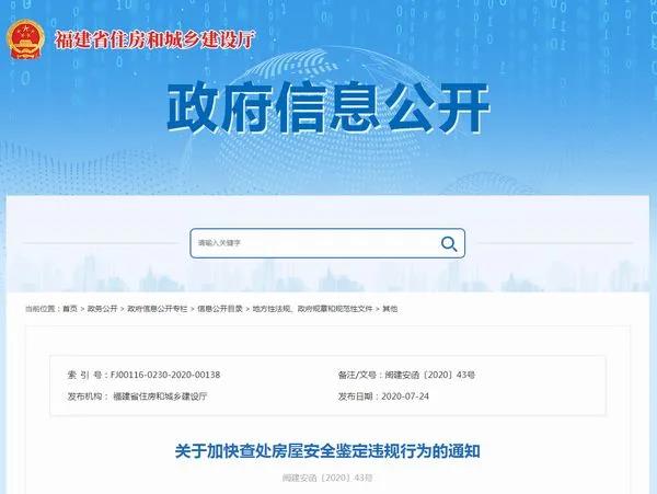 發(fā)布日期:2020-07-28 14:58:11 瀏覽量:776近日,福建省房屋安全隱患排查整治專(zhuān)項(xiàng)行動(dòng)領(lǐng)導(dǎo)小組辦公室印發(fā)《關(guān)于加快查處房屋安全鑒定違規(guī)行為的通知》,要求各房屋結(jié)構(gòu)安全隱患大排查大整治百日攻堅(jiān)專(zhuān)項(xiàng)行動(dòng)牽頭單位加快查處房屋安全鑒定違規(guī)行為。
