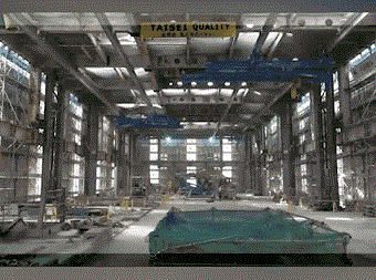 封閉樓頂后他們用天花板起重機(jī)逐段分解樓板,接著將墻體拆除。拆除完一層后,再繼續(xù)拆除下一層直至拆完整棟高樓,拆出的建筑垃圾全部用塔吊運(yùn)至地面裝車運(yùn)走。