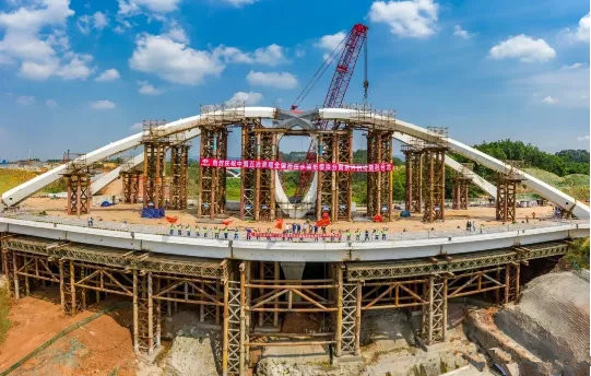 發(fā)布日期:2020-07-30 16:53:12 瀏覽量:1397全國(guó)首座水滴形梁拱分離系桿拱橋長(zhǎng)160米,寬40.5米,橋梁基礎(chǔ)為群樁基礎(chǔ),下部結(jié)構(gòu)為花瓶型橋墩,上部結(jié)構(gòu)采用兩跨孔凈跨65.66米水滴形梁拱分離系桿異型鋼拱梁,宛如一顆巨大的水滴落在橋面上,其結(jié)構(gòu)形式及建筑造型為全國(guó)首創(chuàng)。