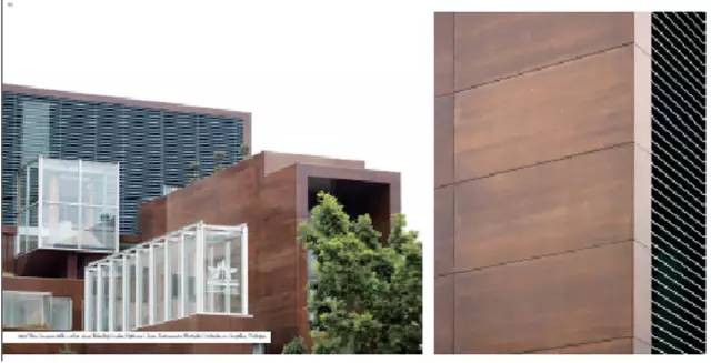 ●帶有金屬質(zhì)感的Viroc紅色外墻